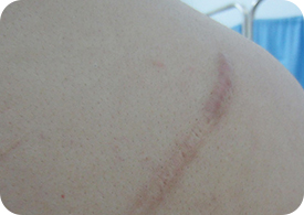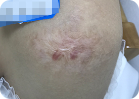 疤痕表面呈红色、潮红或紫红,局部增厚变硬,疤痕增生期,伴瘙痒刺痛症状。萎缩型对症咨询